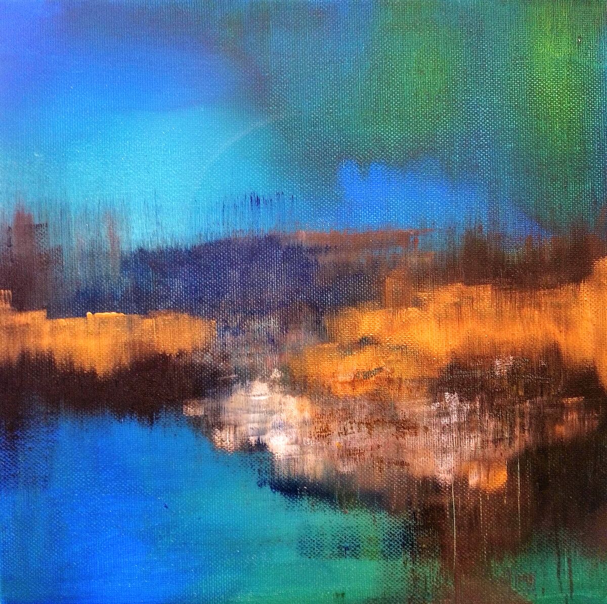Fantastic, original, mixed media painting on stretched canvas.